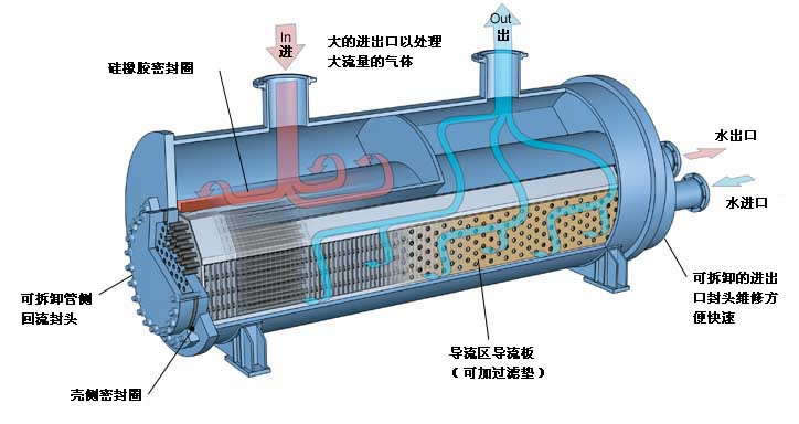 浮頭式換熱器可以設(shè)置導(dǎo)流筒,可以防止進(jìn)口處高速流體對(duì)管束的直接沖擊,使得殼程流體達(dá)到較均勻的分布,從而使殼程進(jìn)口段管束的傳熱面積得到充分利用,減少傳熱死區(qū)及防止進(jìn)口段可能會(huì)出現(xiàn)的流體誘導(dǎo)震動(dòng)。